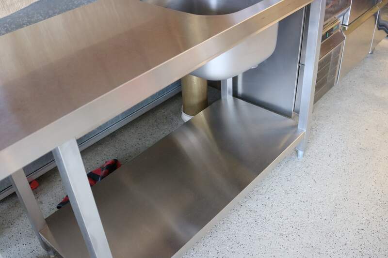 Arbeitstisch mit Unterschrank, Edelstahl, HAKA